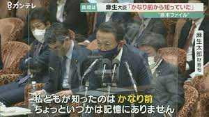 国会で麻生大臣が野党議員から存在をいつから知っていたか問われた。