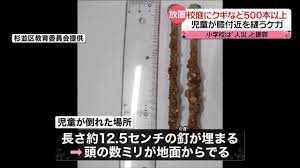 東京・杉並区の小学校の校庭にクギなどが500本以上放置され、児童がケガをしていたことがわかりました。